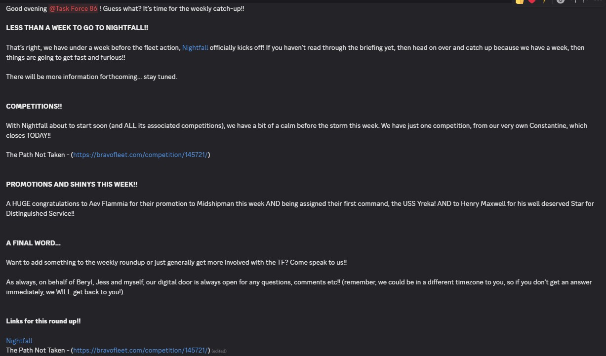 • Link through to Discord events & BFMS pages where appropriate.