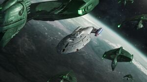 Now it was under the commanded by Captain Laura McCallister, the ship was sent as part of Starfleet's response to the destruction of Romulus to provide aid. Being fast enough, the ship was able to help pull survivors from the wake of the devastation sent across the Romulan Star Empire and deposit them at refugee camps set up along the former Romulan Neutral Zone. The ship was placed on patrol and other duties along the Romulan border for the next five years.