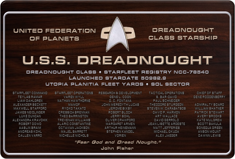 USS Dreadnought NCC-78540 is a Dreadnought-class Federation starship currently assigned to Fourth Fleet's Operations. She is currently under the command of Captain Alexander Omec.