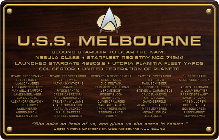USS Melbourne (NCC-71944) is a Nebula-class Federation starship currently assigned to the Fourth Fleet.