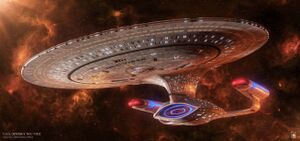 The USS Odyssey (NCC-80000), is an Odyssey-class Federation starship and was the prototype for the class. The Odyssey is a deep space heavy explorer and is known for many of its exploits in the Alpha and Beta Quadrants. At the end of 2400, the ship became the flagship for the Odyssey Squadron, a group of Starfleet ships grouped together as an expeditionary force in the Delta Quadrant. As of 2401, the ship is under the command of Captain Max Duncan.