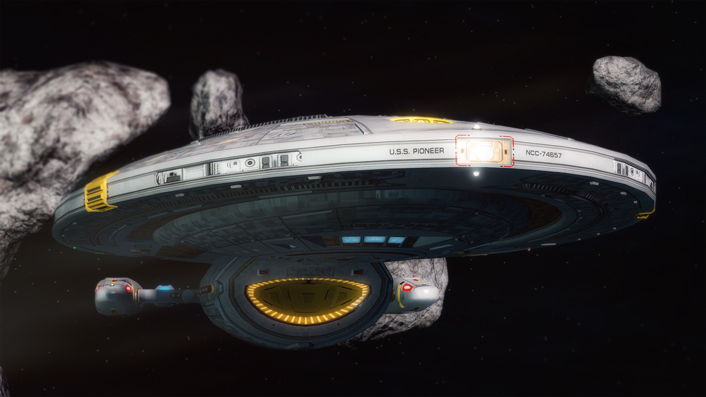 With the battle over, the Pioneer set course for Avalon Fleet Yards for crew rotation and repairs in preparation for the Frontier Day festivities. Unfortunately, repairs took longer than what was originally planned, and Pioneer couldn't make the trip to Earth for the main celebrations, remaining instead stayed in dock at the fleet yards. After the Borg signal was activated, the Pioneer crew found themselves overtaken by the new hive mind and a desperate fight to retake the ship ensured. During the battle, phaser fire from the Borg controlled crew hit and ruptured several plasma conduits on the Engineering deck which, combined with intentional sabotage from the chief engineer and chief operations officer, meant Pioneer sustained considerable damage during the takeover. When the Borg signal was deactivated, Pioneer was severly damaged and was forced to return to dock for major repair works.