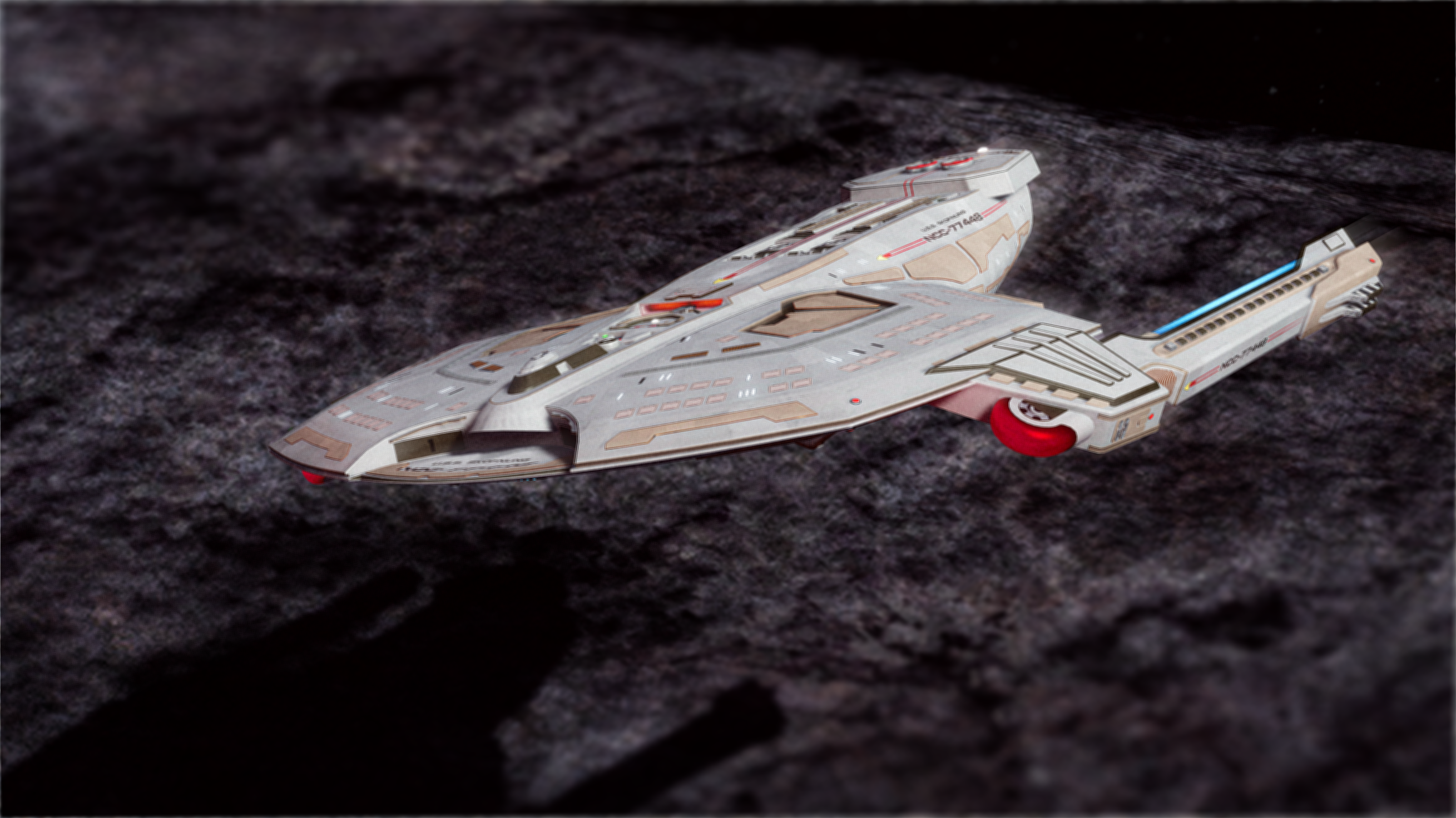 Her early service only proved her modifications to be beneficial and Skofnung became a favourite of Starfleet Security in pursuing fugitives operating near the Cardassian Border and the Former Demilitarised Zone. Her hardy construction and high manuverability allowed her to continue pursuits into locations where bigger or more delicate vessels may need to turn back, and she regularly received missions within the Badlands and the largely unmonitored and densely packed asteroid fields that are the preferred hideout for pirate activity.